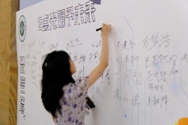 照片墙上张贴的是独属于23届毕业生的回忆。在留言板上写下自己的名字,过往点点滴滴涌上心头。