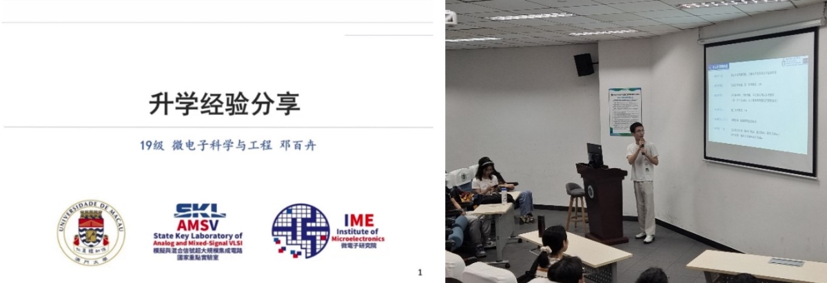 首先进行的是来自澳门大学的邓百卉同志的线上分享。邓百卉同志是裸聊app 19级微电子科学与工程专业的同学,毕业后在澳门大学微电子研究院继续深造。邓百卉同志为大家介绍了澳门大学微电子研究院的基本情况,并分享了自己在升学申请过程当中的经验和注意事项。此外,来自香港科技大学(广州)的陈培宇同志就个人升学时间线为本科同学展示了自己的申请过程,向大家分享了如何去确立目标和做出准备,并提醒大家要多了解学校和课题组的详细信息。