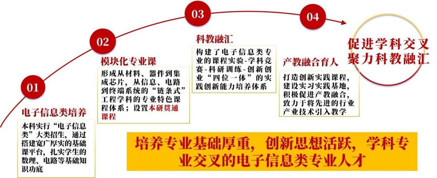 以立德树人为根本,以科教融合与产教融合为抓手,依托国家省部级科研平台、校企联合实习教学基地和知名高新科技企业俱乐部,为学生参与科研训练、学科竞赛、创业训练、实习实践提供保障。
