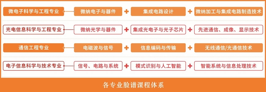 光电信息科学与工程专业是国家级“一流本科专业”建设点。专业建成以“微纳光学与器件、集成光电子与光子芯片和先进通信、成像、显示技术”为核心的课程体系,旨在培养具备集成信息光电子、信息显示、光信息处理与传输等方面的知识基础和应用能力,面向光通信、新型显示、光电能源等行业的专业人才。