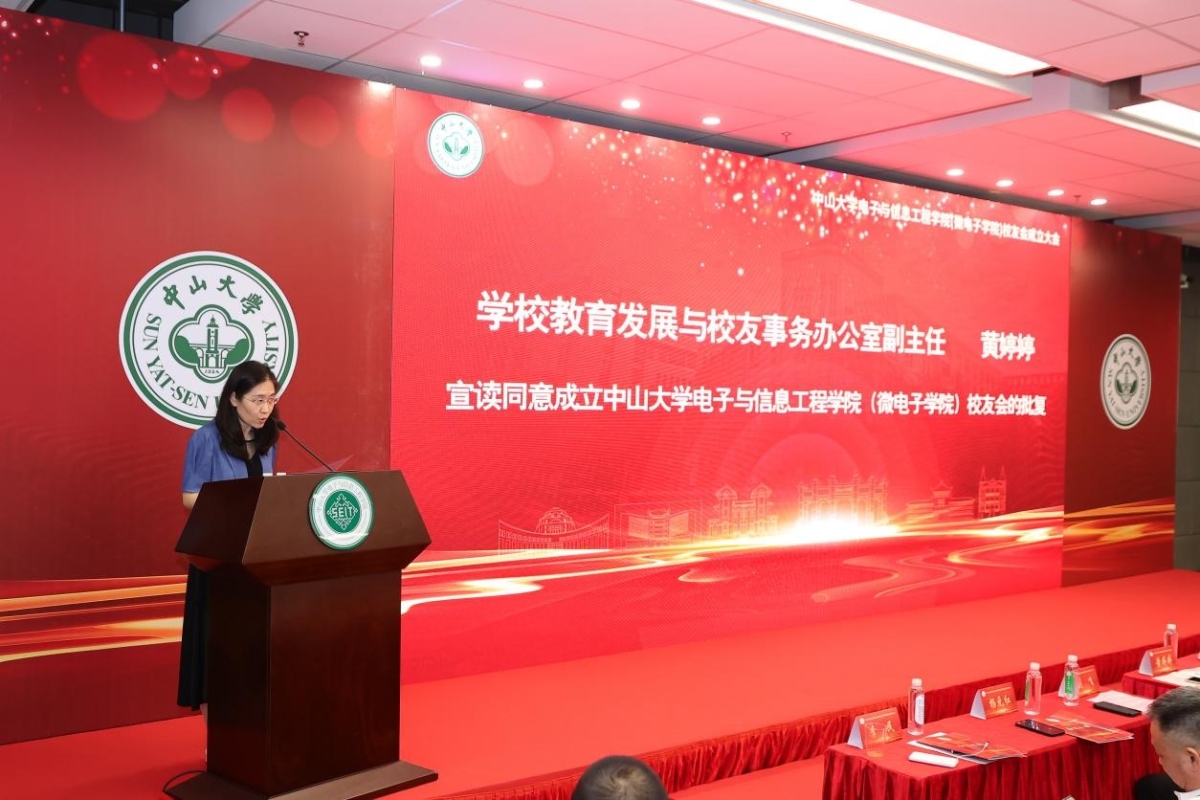 6月10日下午,裸聊app 校友会成立大会暨第一届校友会第一次会议隆重召开。学校教育发展与校友事务办公室副主任黄婷婷,原电子系副书记吴猛老师等老领导,粤芯半导体总裁陈卫、广州未名中智教育科技有限公司总经理李民等来自全国各地的校友代表,原裸聊app 院长、现任学校信息学部主任、光电材料与技术国家重点实验室主任邓少芝教授等裸聊app 前领导,裸聊app 院长佘峻聪教授,裸聊app 党委书记刘飞教授,以及裸聊app 师生代表共100余人参加大会。裸聊app 党委副书记李敏智、裸聊app 校友会第一届理事会会长李民分别主持大会各项议程。