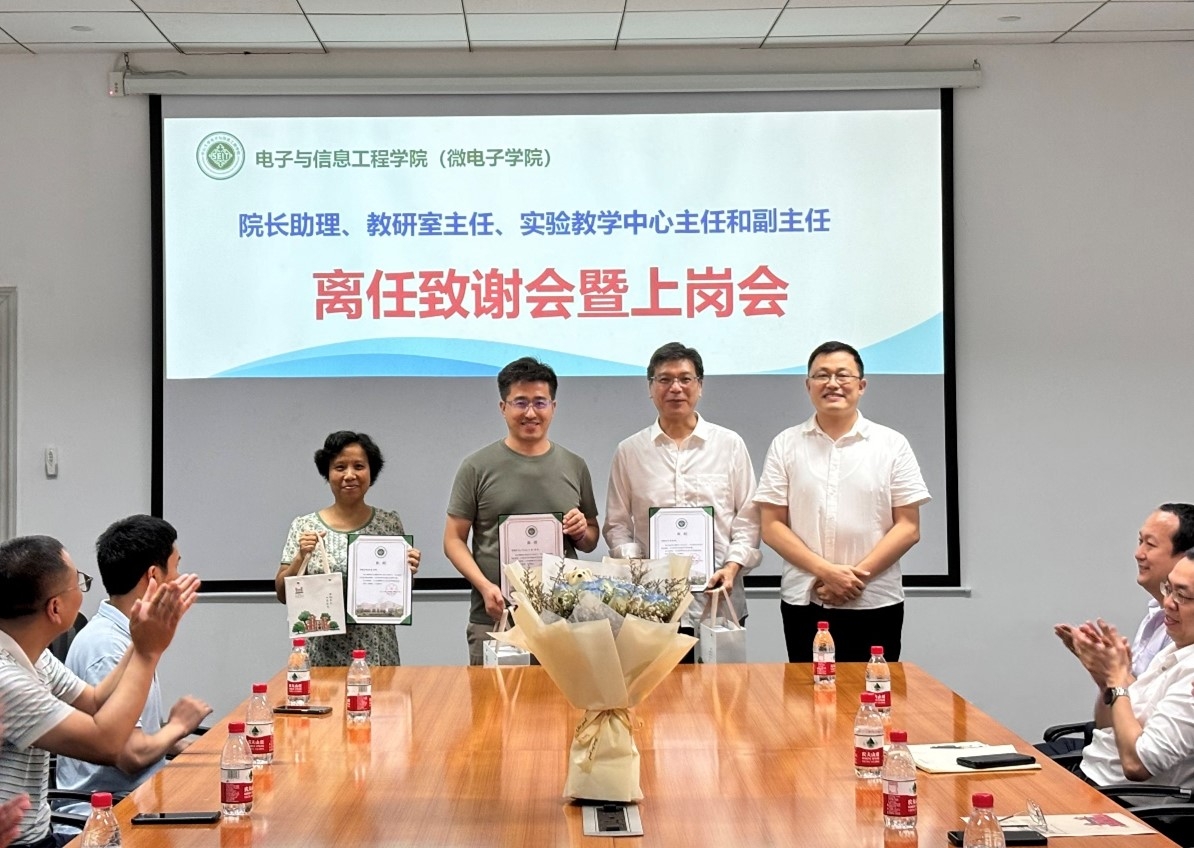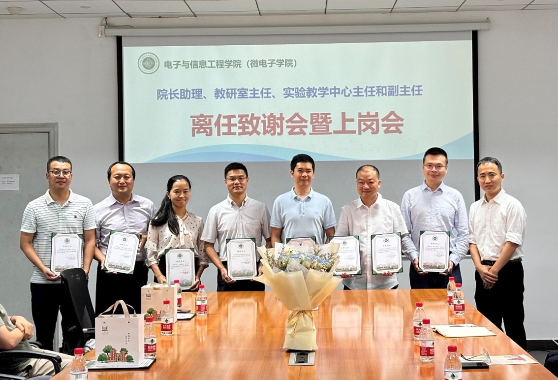 佘峻聪院长为新任院长助理、教研室主任、实验教学中心主任和副主任颁发任职通知。经研究决定:刘正勇副教授连任裸聊app 院长助理;喻颖教授任裸聊app 院长助理;陈翔教授任电子信息科学与技术教研室主任;郭建平教授连任微电子科学与工程教研室主任;邵磊教授任光电信息科学与工程教研室主任;李凡教授任通信工程教研室主任;陈翔教授任电子与信息工程实验教学中心主任;卢星副教授任电子与信息工程实验教学中心副主任。佘峻聪院长对新任院长助理、教研室主任、实验教学中心主任和副主任表达了诚挚的祝贺,并希望他们能够立足岗位、履职尽责,为裸聊app 的事业发展贡献力量。